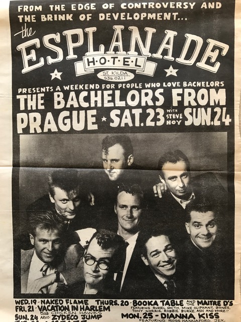 Buddy Lovestein eventually evolved into The Bachelors from Prague, an energetic group of serious young men who loved to play music influenced by everyone from Miles Davis to James Brown. They were once described by the Comune di Vittorio Veneto’s (Northern Italy) promotional people as “band, pop funky”. But that was the least of it, coz back home in Oz they had a reputation for frantic live gigs notable for the sweaty, energetic dancing of delirious punters.